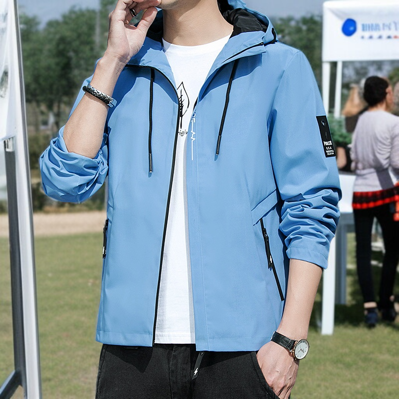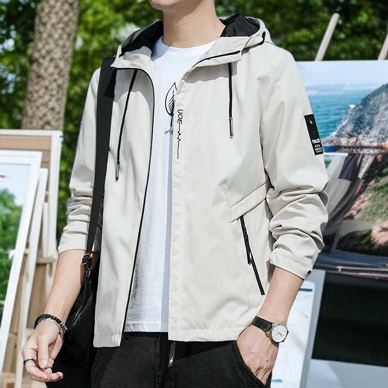 春と秋のジャケットメンズコートフード付き学生ユースカジュアルジャケット